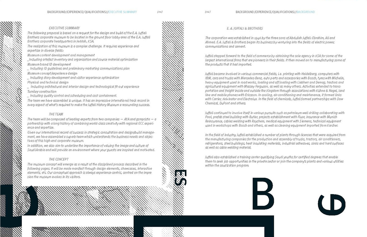 Juffali Museum, Saudi Arabia Proposal document design, random selected spreads